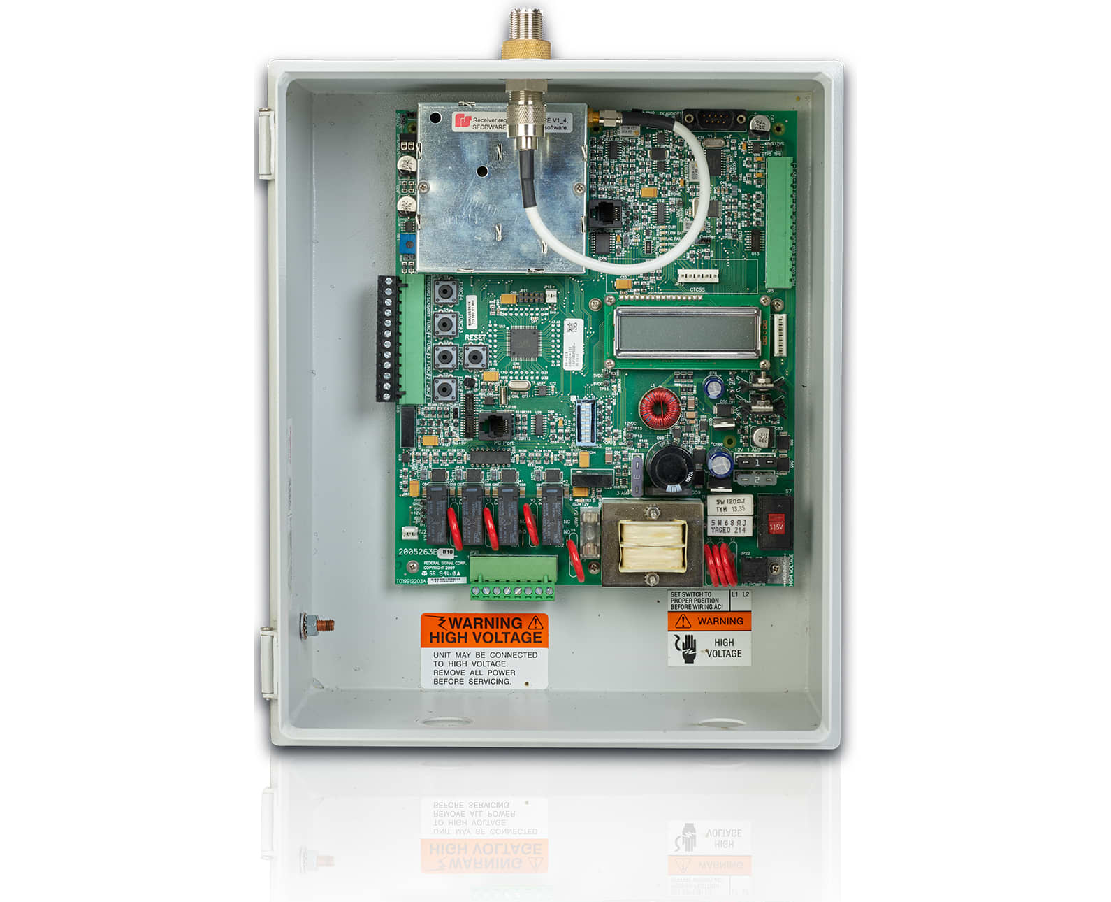 The Federal Controller is an ideal choice to control Eclipse8 and Model 2 siren series, radio activation of indoor PA systems, warning lights or various warning equipment, and firehouse alerting applications.