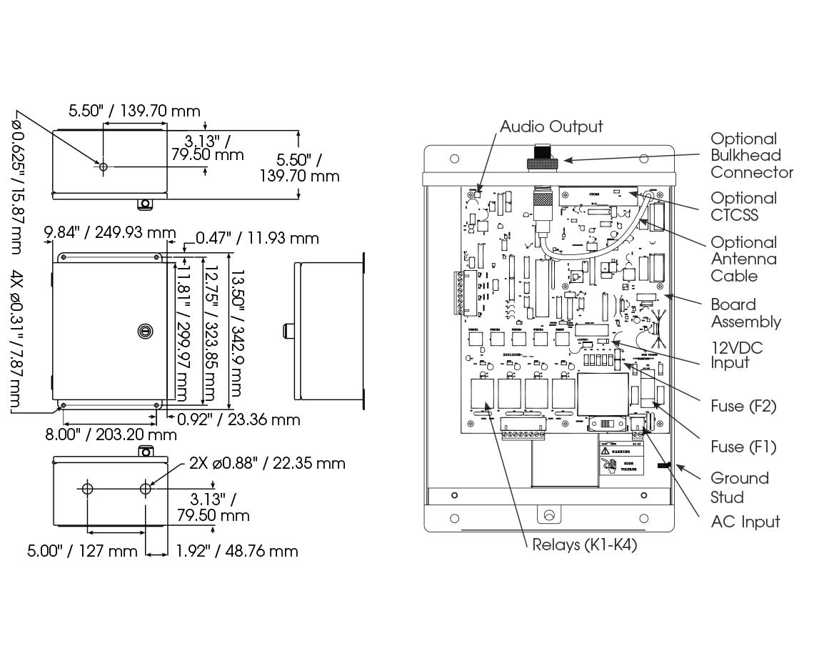 | Features | UL Listed, One Way Radio Control Available, Four Individually Programmable Output Relays, DNV Certified, Six Built in Siren Tone Signals for PA/Intercom |