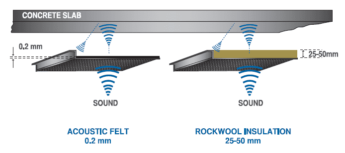 Proline Panel Acoustic Insulation is provided with non-woven, non-flammable, acoustic black felt glued over the whole perforated area. Its sound absorption performance is tested in accordance with ASTM C423-90a.