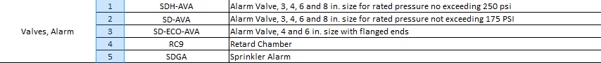 Valves Alarm SDH-AVA has a valve, 3, 4, 6 and 8 for rated pressure not exceeding 250 psi.