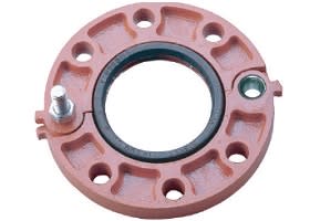 The Model 7041 Flange Adapter allows for a direct connection with ANSI class 125/150 flanges. The specially designed gasket enables the transition from a grooved system to a flanged system or component with this single flange adapter. The two-segment design provides an easy and fast installation. 2” through 12” flange adapters are supplied hinged as a single assembly, while 14” - 24” (Model 7041N) are supplied with two separate segments and a draw kit. All include an EPDM rubber gasket and plated track bolts and nuts. Housing segments are supplied with our standard painted finishes, i.e. orange or RAL3000 red. Optional finishes such as hot dipped zinc galvanized and custom epoxy coatings are available.