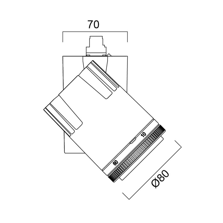Spotlight Beacon LED Muse II is an integrated LED spotlight, white RAL 9016, unique soft-touch ring, adjustable beam angle from an 8° spot to a 55° flood, compact and minimalist design, ideal for the museum, gallery and high-end retail applications, die-cast aluminium body, passive cooling heatsink.