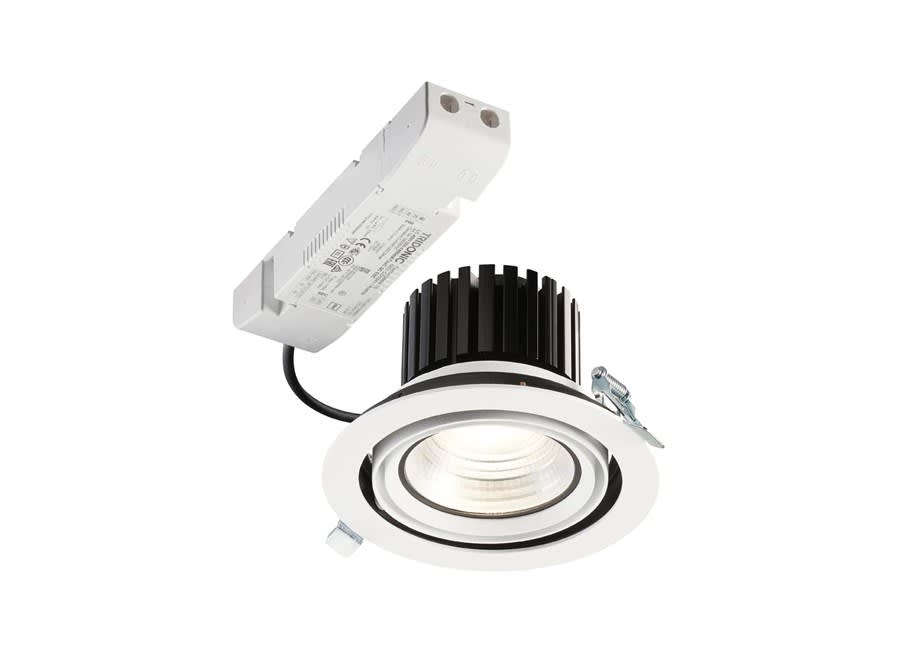 Accent Downlight Expospot 90 Cardan 0060382 is the Integrated LED gimbal accent downlight, ideal for retail and display applications, die-cast aluminium body, passive cooling, optics: aluminium reflector and lens combination, total fixture output: 3458lm, LOR: 100%, colour rendering: Ra 90 typical, LED Chromacity: 3 step MacAdam ellipse, lifetime: 60,000 hours at 70% of the original output (L70B50), energy class: A++, A+, A, IR/UV free light source without heat radiation, electronic driver, non-dimmable, electrical protection: CLASS II.