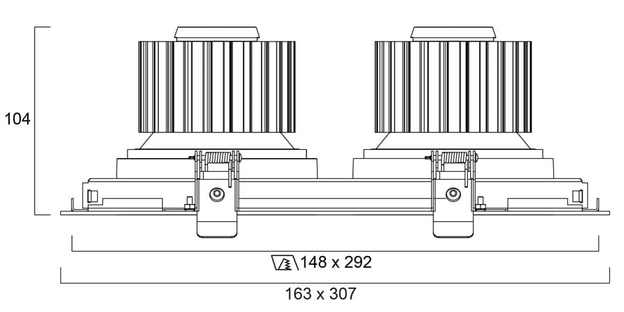 Ceiling cut-out:148x292mm