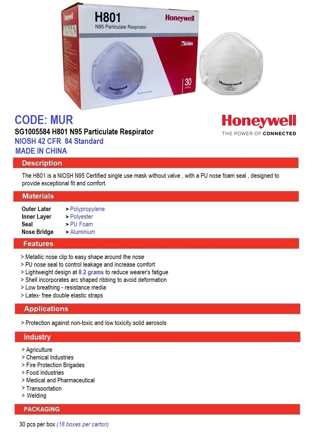 | Certification | NIOSH, N95 |