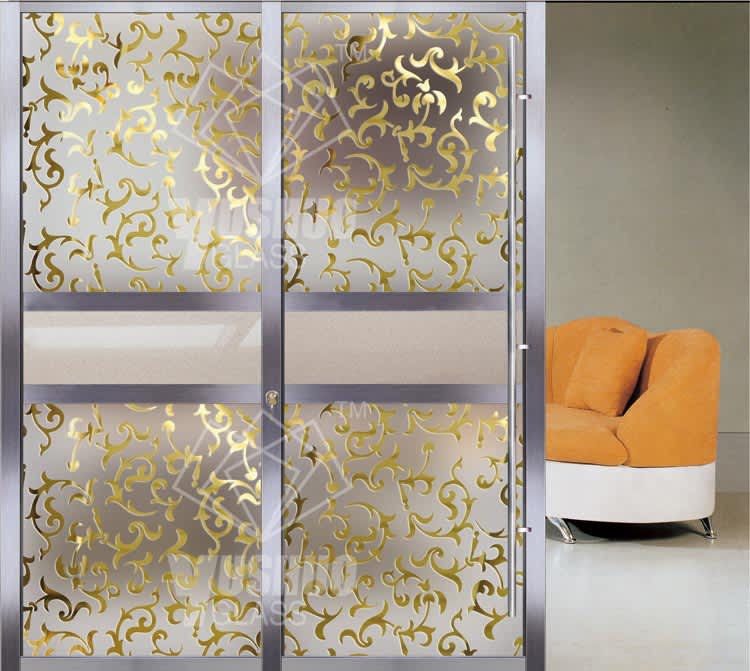 The Golden Coating process gives the glass a two-side reflective effect printed on the different patterns we can produce. Combined with Acid Etched Technology we can enhance the privacy of different