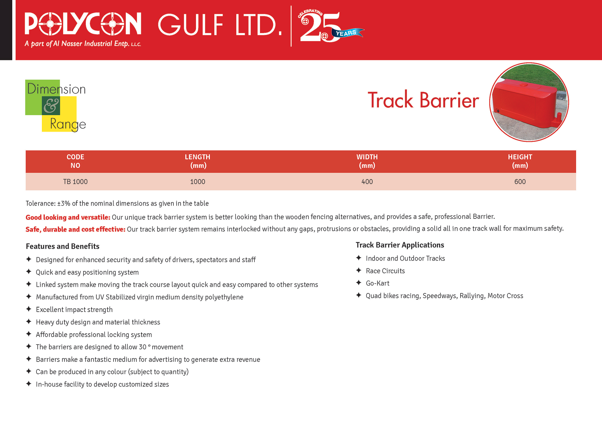 Polycon' s unique track barrier system is better looking than the wooden fencing alternatives and provides a safe,professional barriers.It remains interlocked without any gaps,protrusions or obstacles,providing a solid all in one tarck wall for maximum safety