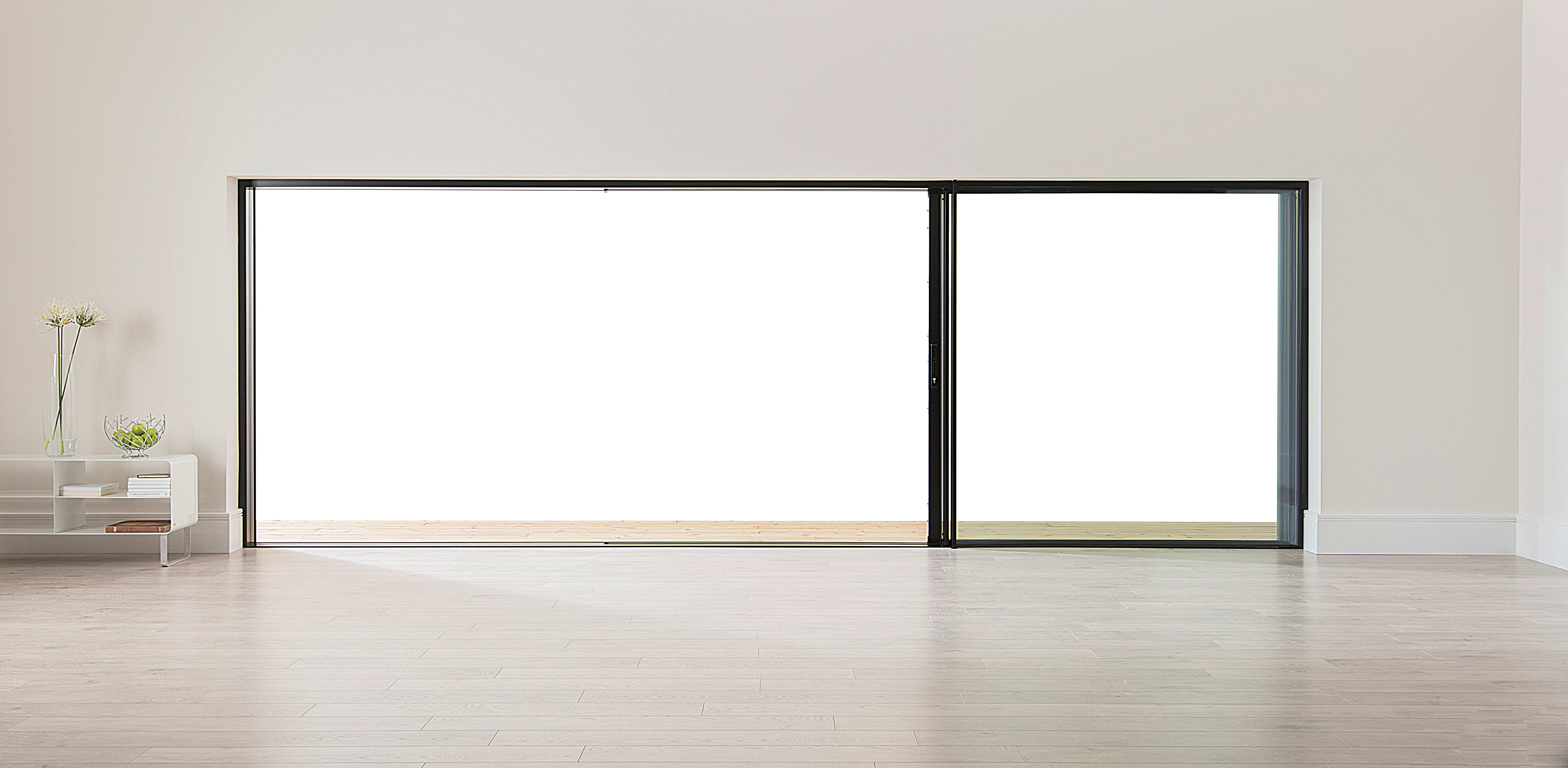 Origin Sliding Door, manufactured in the UK. Maximum panel size 3000mm high x 2200mm wide. Available in 150 different RAL colours and wood grain finishes.