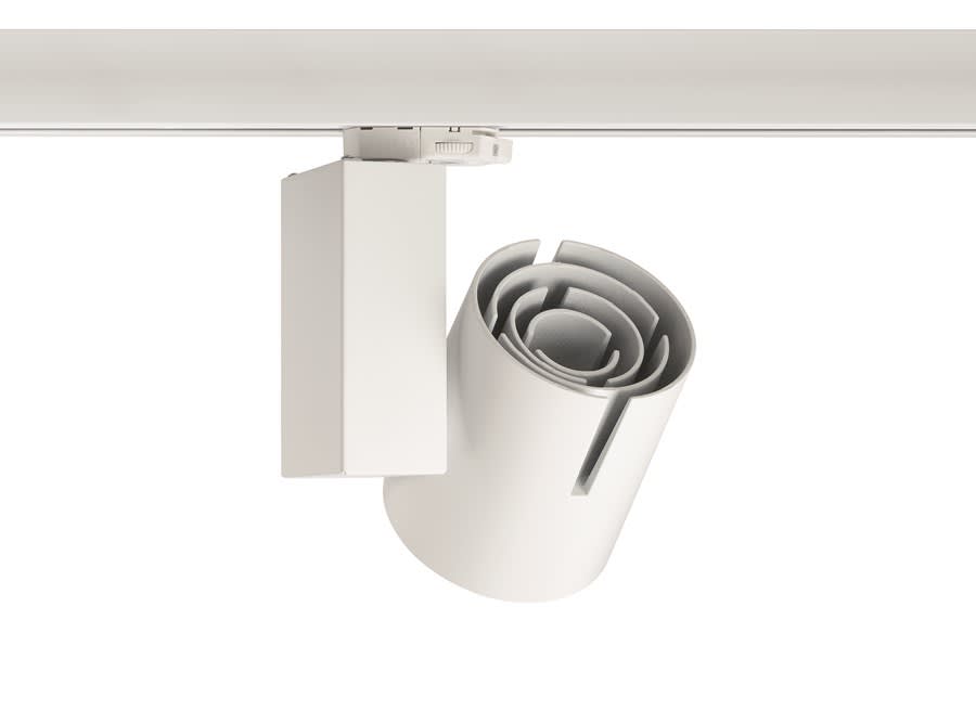 Spotlight Start Track L Dali is used for track mounting, decorative heat sink, white (RAL 9016) housing, drive current: 1400mA, DALI dimmable, (H x W) 240 x 164 mm.