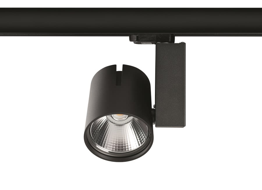 Spotlight Start Track L Dali is used for track mounting, decorative heat sink, white (RAL 9016) housing, drive current: 1400mA, DALI dimmable, (H x W) 240 x 164 mm.