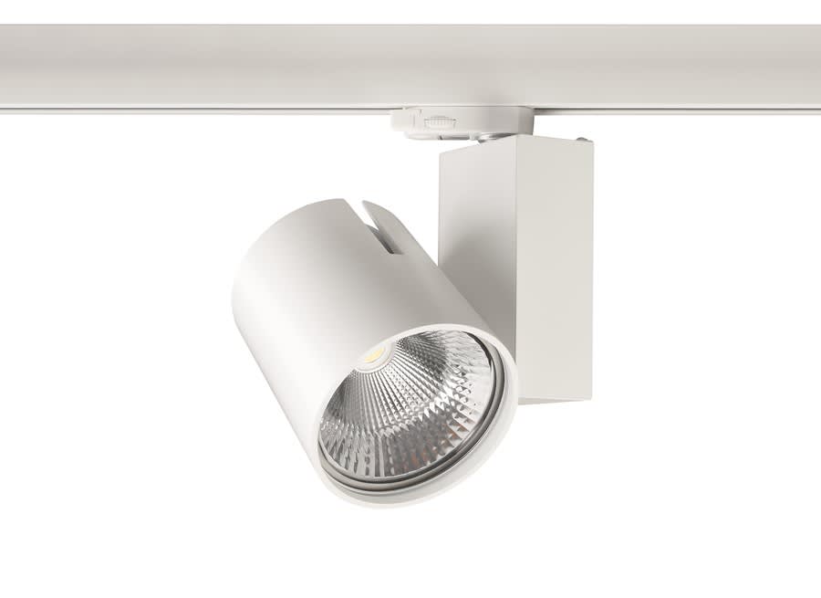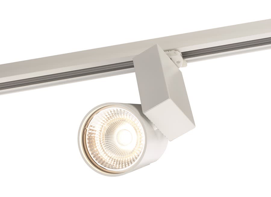 Start Track L High Output is an integrated LED spotlight, Textured White - RAL9016, compact and minimalist design, ideal for retail applications, die-cast aluminium body, passive cooling heatsink. Global Track 3 Phase adapter suitable for Global track 3-circuit tracks.