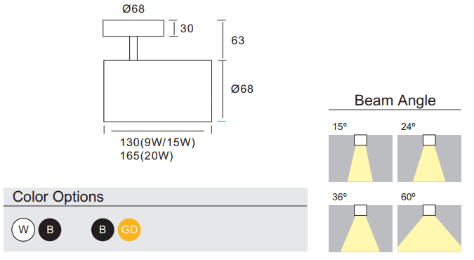 | Beam Angle (°) | 36, 24, 60, 15 |